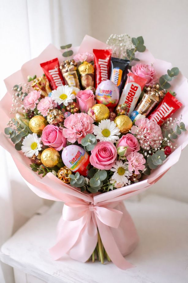 Mélange de fleurs fraiches de saison et friandises (cachers)